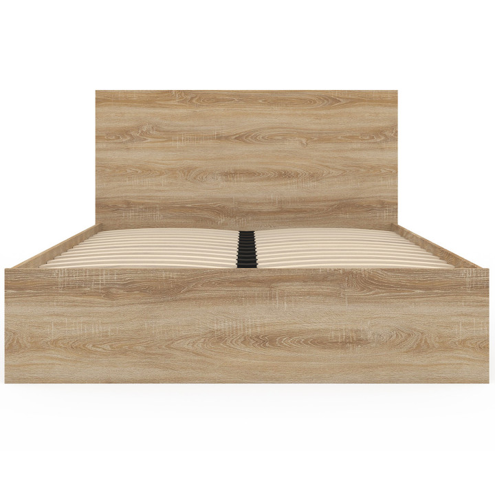 Questo elegante letto presenta un'ampia testata alta 90 cm (dal pavimento), un giroletto e un'ampia pediera per una maggiore stabilità. L'intera struttura è realizzata in pannelli di particelle, che la rendono estremamente robusta. Pratico e attraente, questo letto starà benissimo nella vostra camera da letto o in quella degli ospiti, mantenendo sempre in ordine il vostro spazio notte.