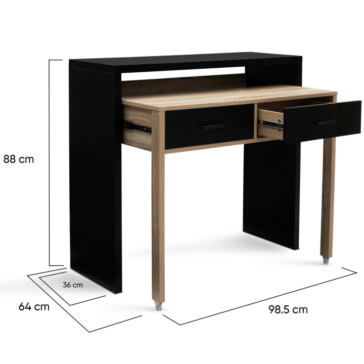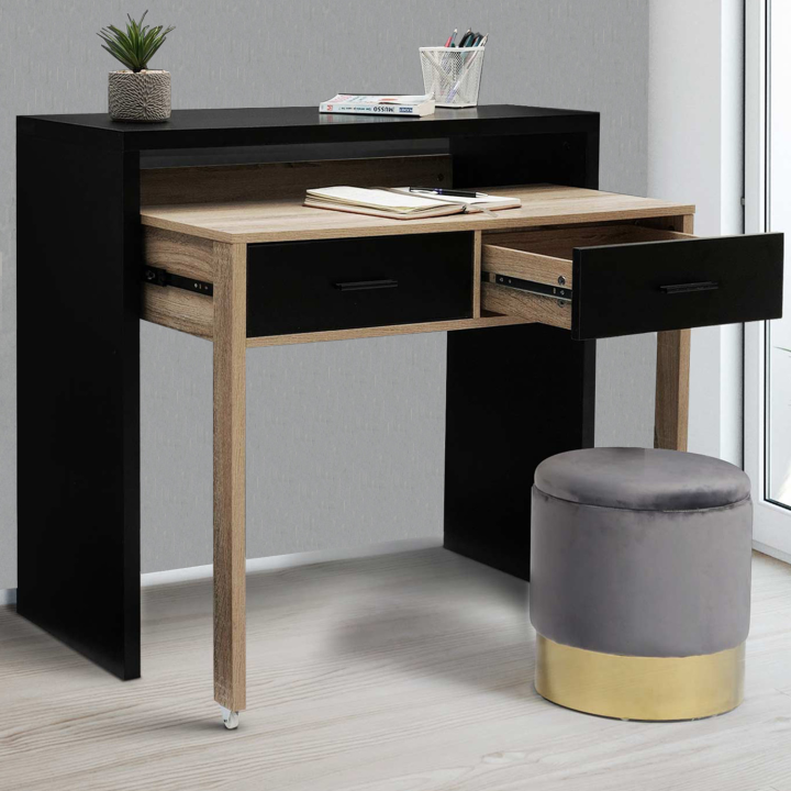 Scrivania allungabile in legno nero e faggio